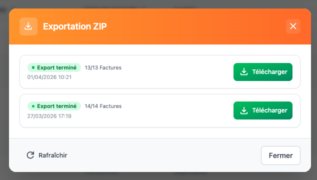 Export d’un ensemble de factures