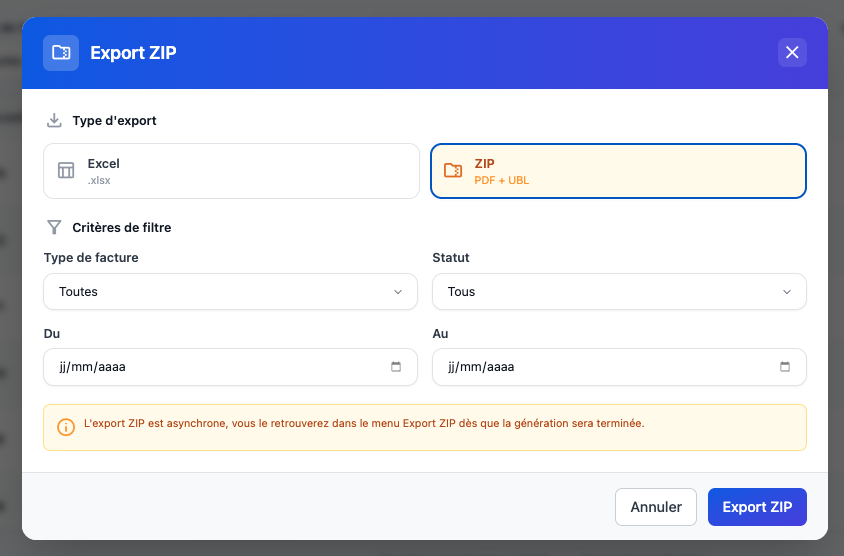 2. Export ZIP (PDF + UBL)